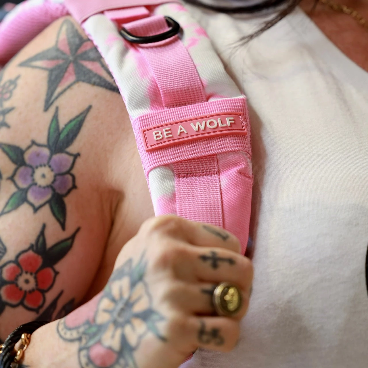 - White on Pink Be a WOLF Strip Patch IncludedÂ