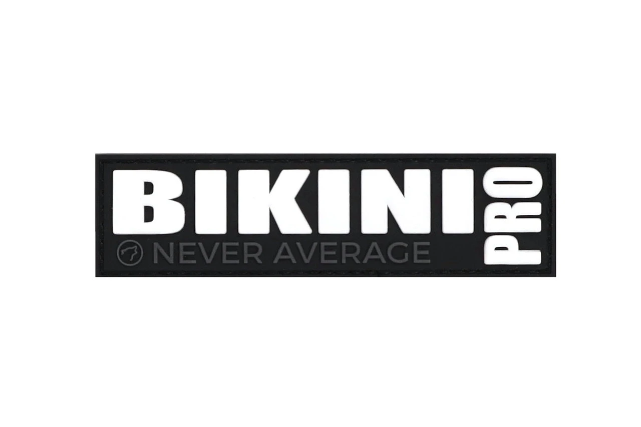 Bikini Pro rubber patch white letters and black background
