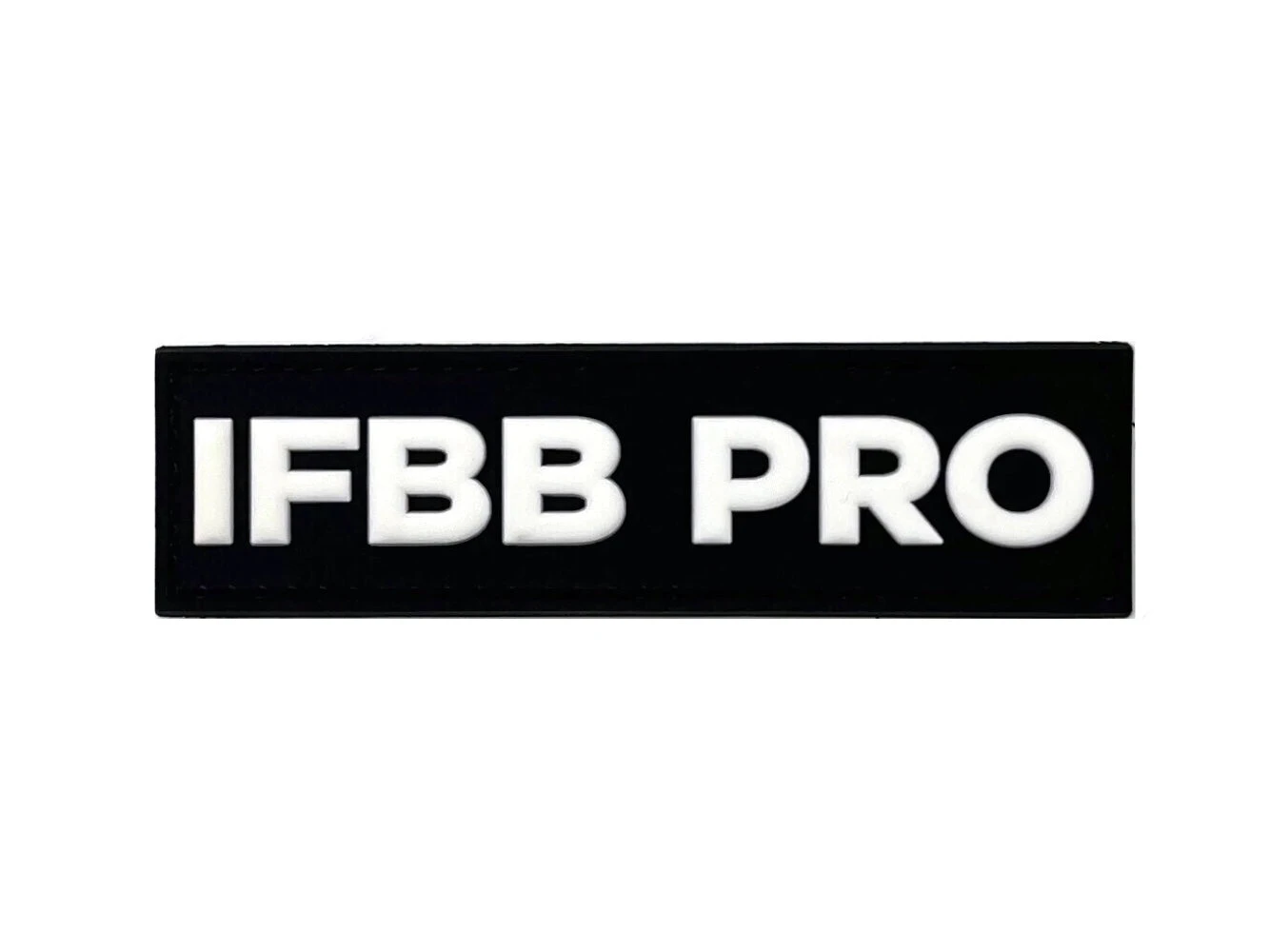 Large IFBB Pro rubber patch white letters and black background