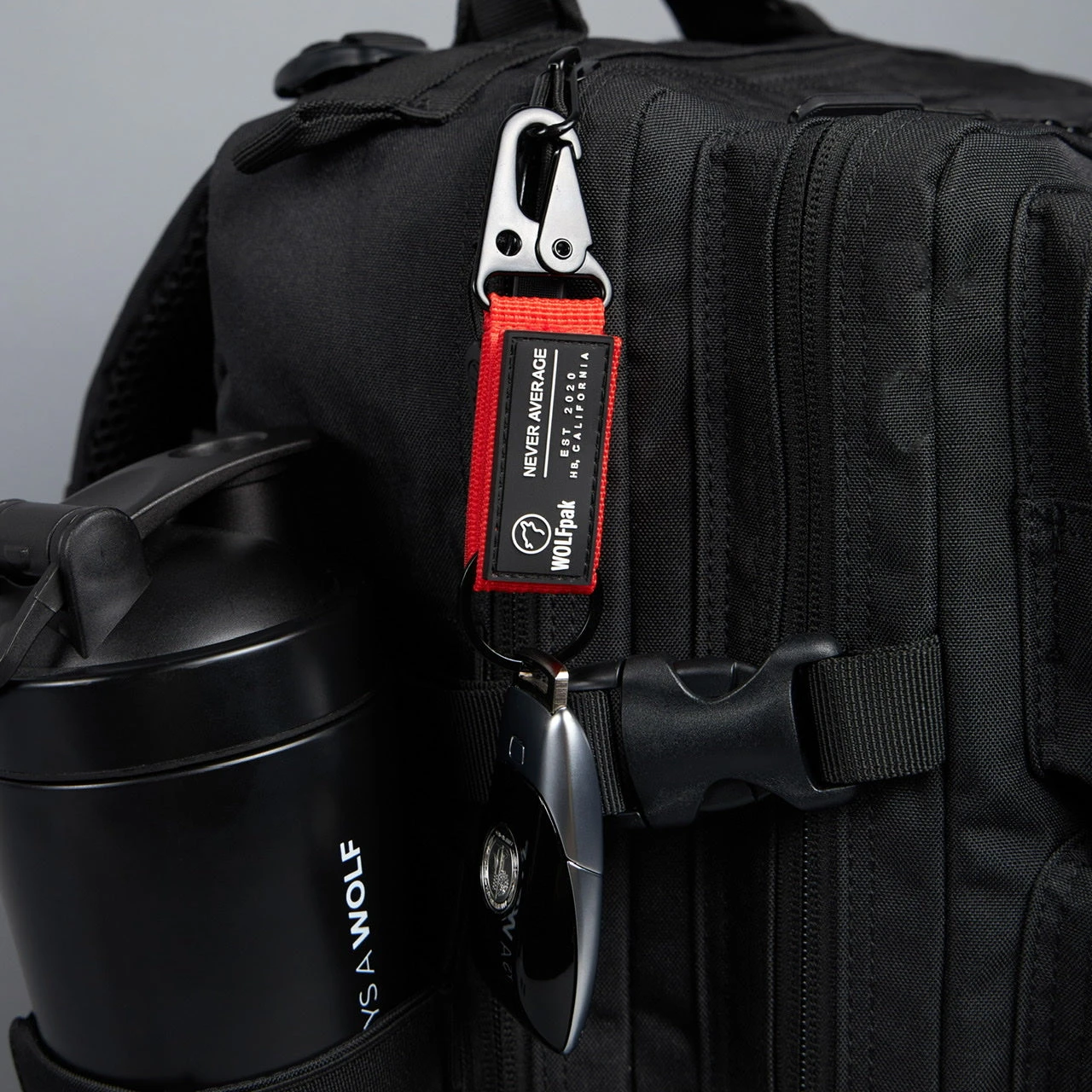 The nylon portion includes WOLFpak est. 2020 Logo Patch branding on one side and hook/loop strip for additional patches on the opposite side with a convenient fold over to attach to your Molle area of the WOLFpak, Waist Belt or End of the Zipper holding your keys or use as a Zipper Pull.Â